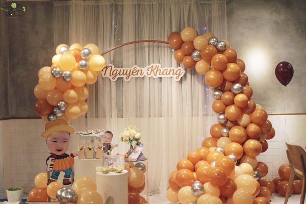 Trang trí sinh nhật cho bé bằng bóng bay và rèm vải